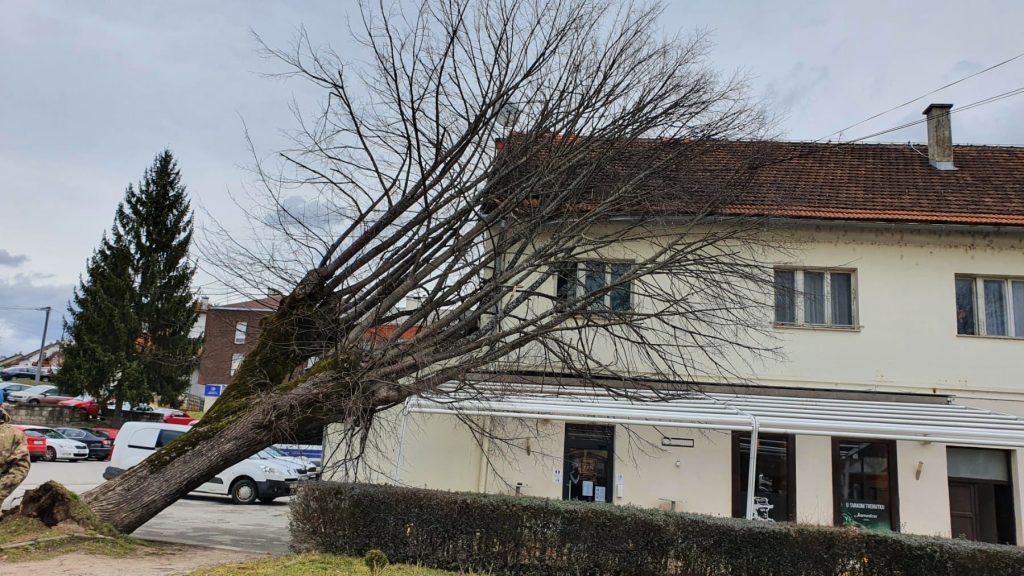 21.02.2022. Ostale tehničke intervencije na otvorenom - pad stabla na objekt Dojava: 11:53 - završetak: 16:22 Lokacija: Grad Slunj, Trg